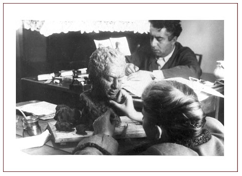 Քանդակագործ Ռ. Սիմոնյանը Խաչատրյանի տանը
